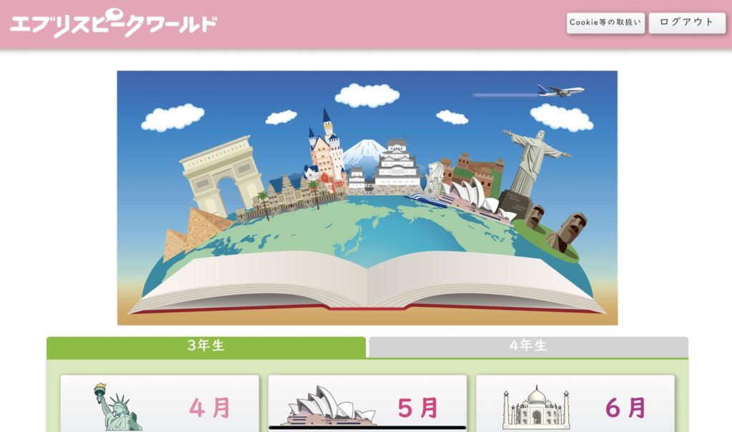 ここでは、小学生コースでの学習の進め方を説明します。小学生コースはテキストとエブリスピークワールド(webアプリ)を使用して学習をすすめます。