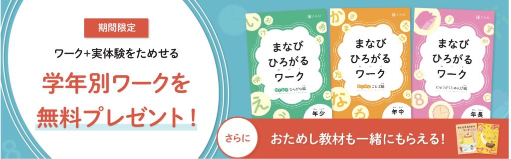 Z会幼児コースは無料でお試し教材があります。子どもや保護者が無理なく取り組んでいけそうか、ぜひ確認してみてください。